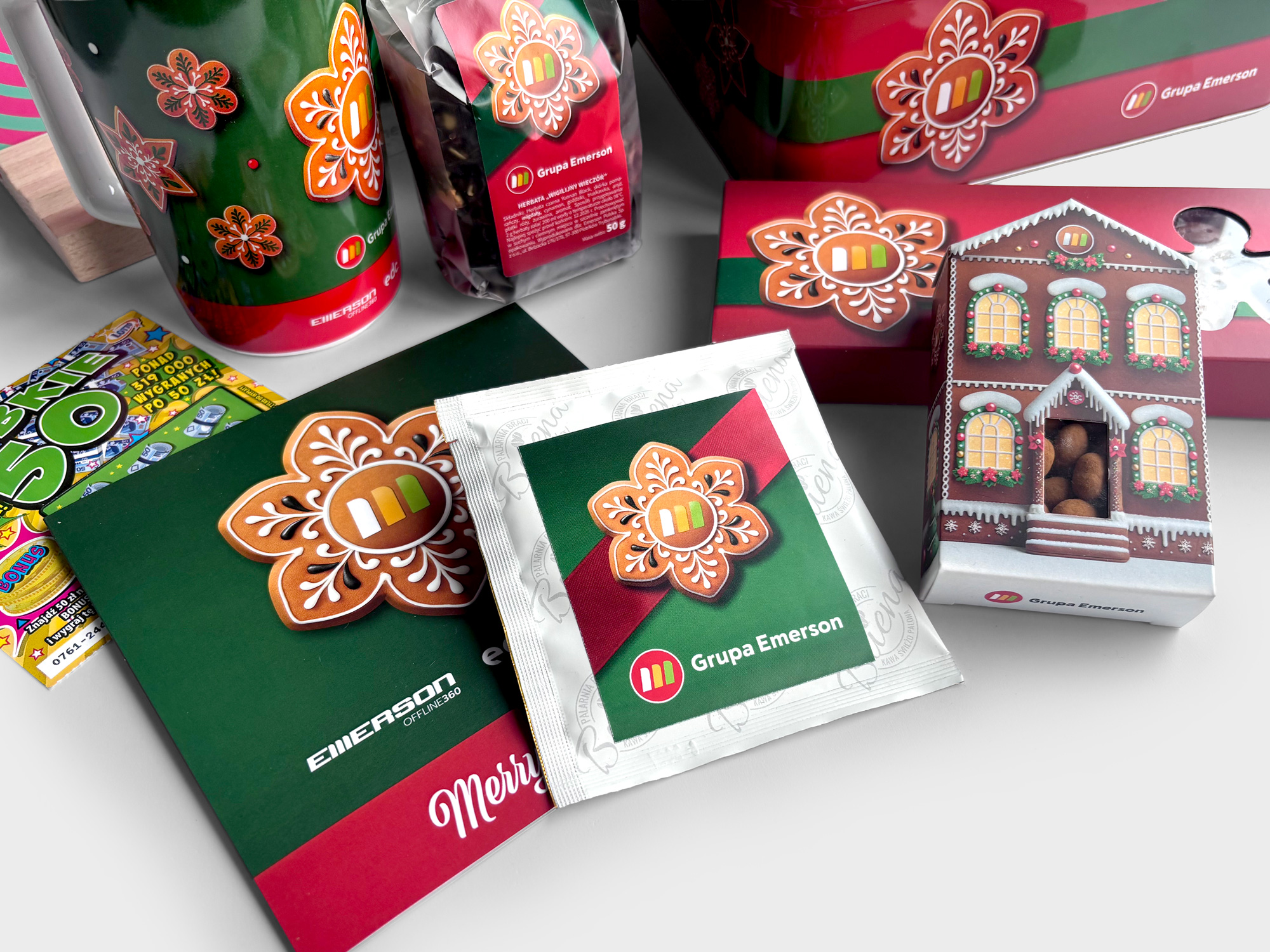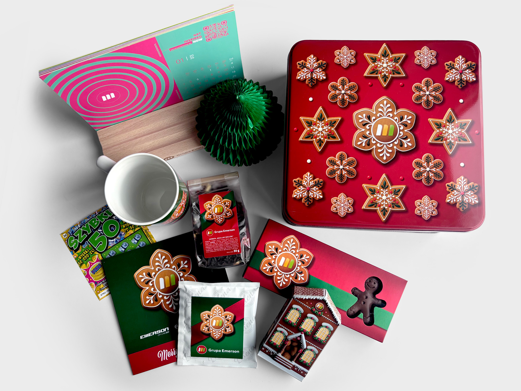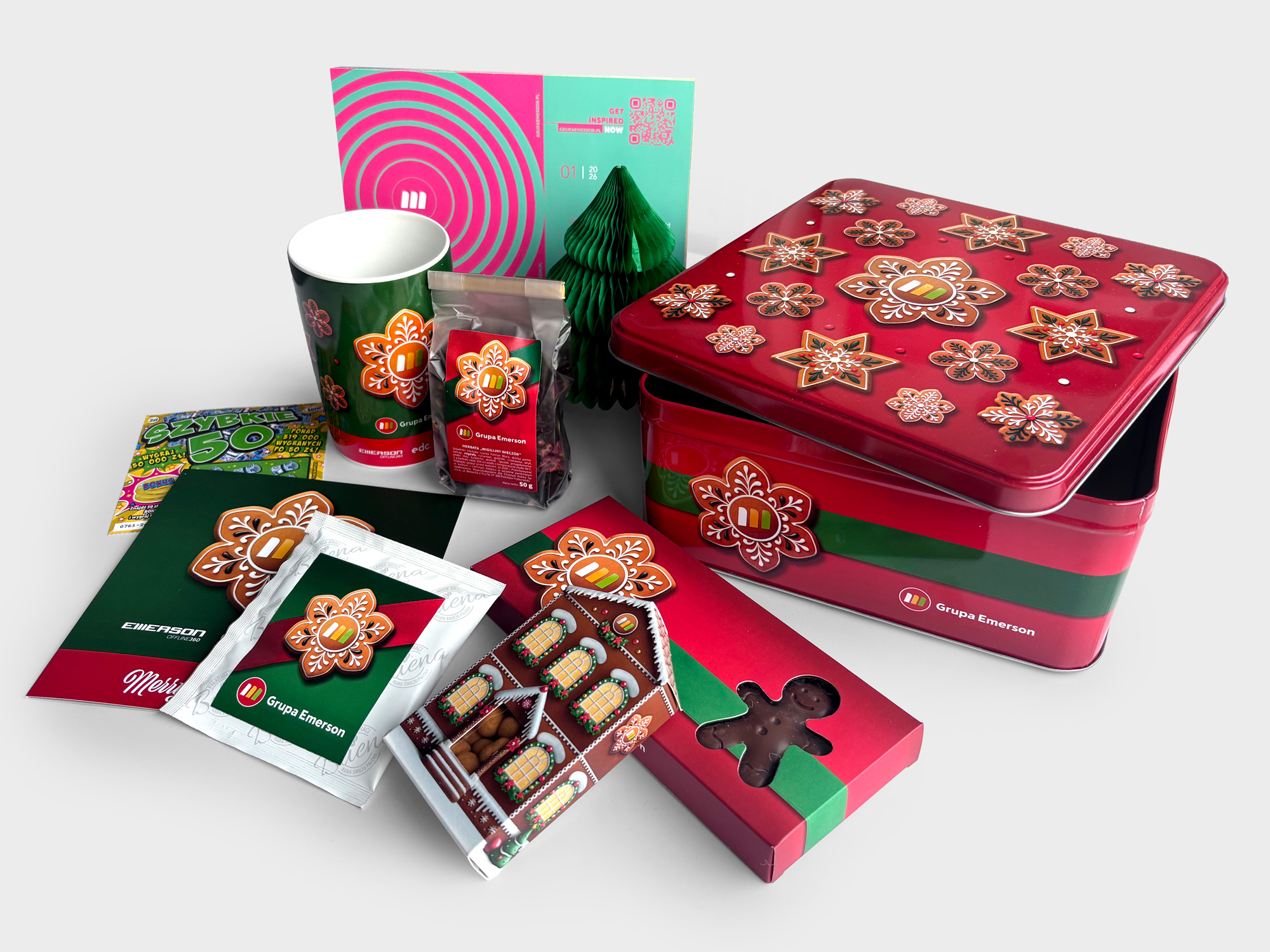 Przygotowaliśmy świąteczny zestaw dla klientów Grupy Emerson zapakowany w metalową puszkę, która zostaje z odbiorcą na dłużej. Opakowanie łączy estetykę z praktycznym zastosowaniem. Po świętach puszka może pełnić rolę pojemnika na drobiazgi lub elementu biurowej organizacji.